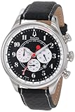 Boîtier en acier inoxydable avec un bracelet en cuir noir avec coutures de contraste. Lunette en acier inoxydable avec tachymètre. Cadran noir avec des mains de ton argent et arabes marqueurs des chiffres des heures. Marqueurs minute autour de la jante extérieure. Aiguilles et index Luminiscent. Affichage de la date apparaît entre les positions 4 et 5 heures. Chronographe - trois sous-cadrans affichant 60 secondes, 60 minutes et 24 heures. Mouvement à quartz. Verre en cristal minéral résistant. Boîtier solide. Diamètre: 45 mm. Épaisseur du boîtier: 19 mm.